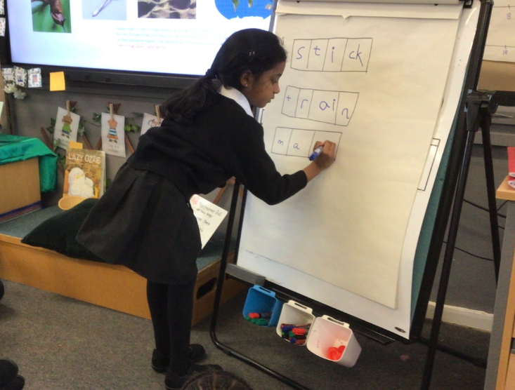 We were reading ‘Stanley’s Stick’ book. We helped Stanley write some words with adjoining consonants.